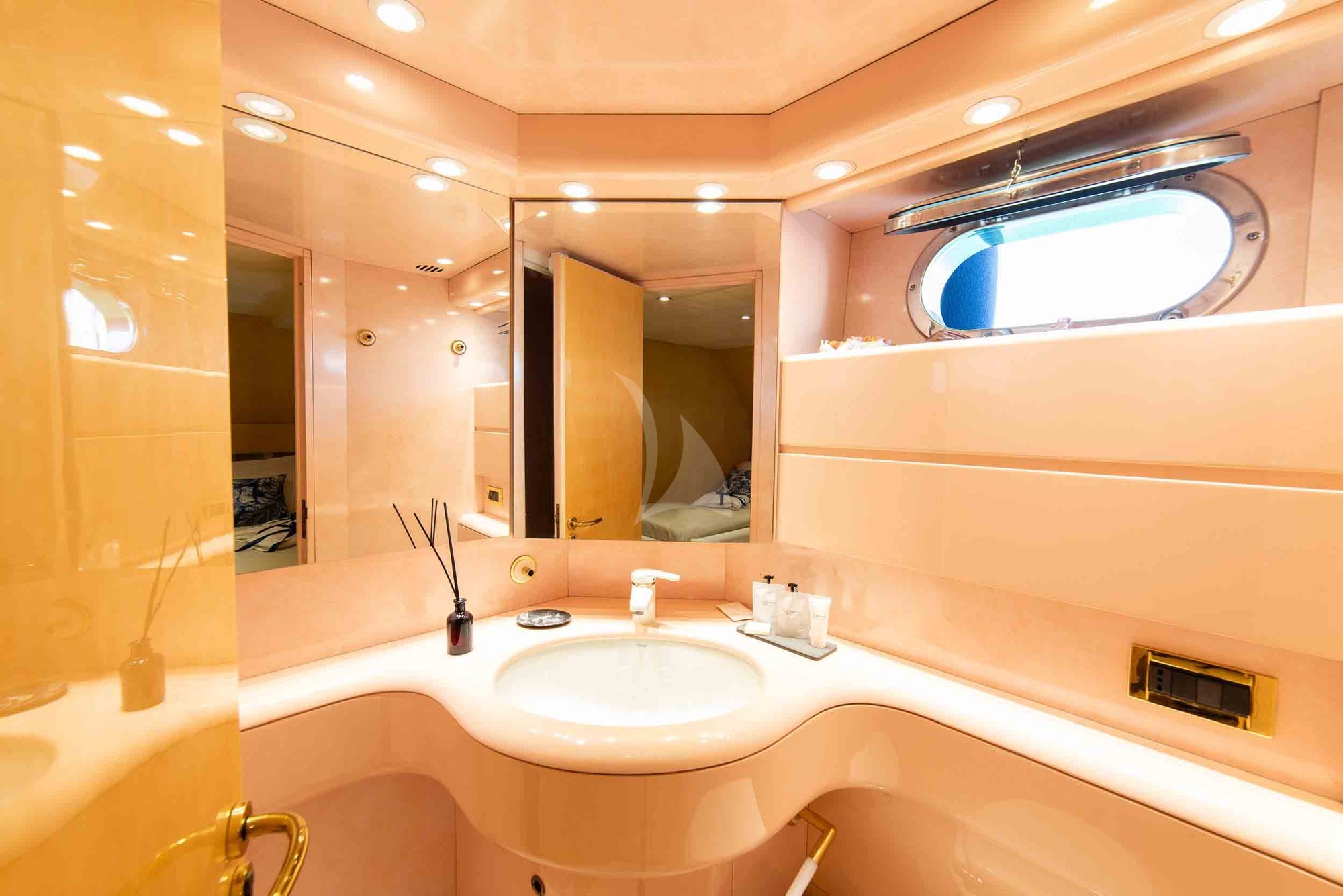 The flybridge provides an alternative relaxation area with sun pad/sofas to the aft and a massive clear central area that can be used for exercise or alfresco dining.