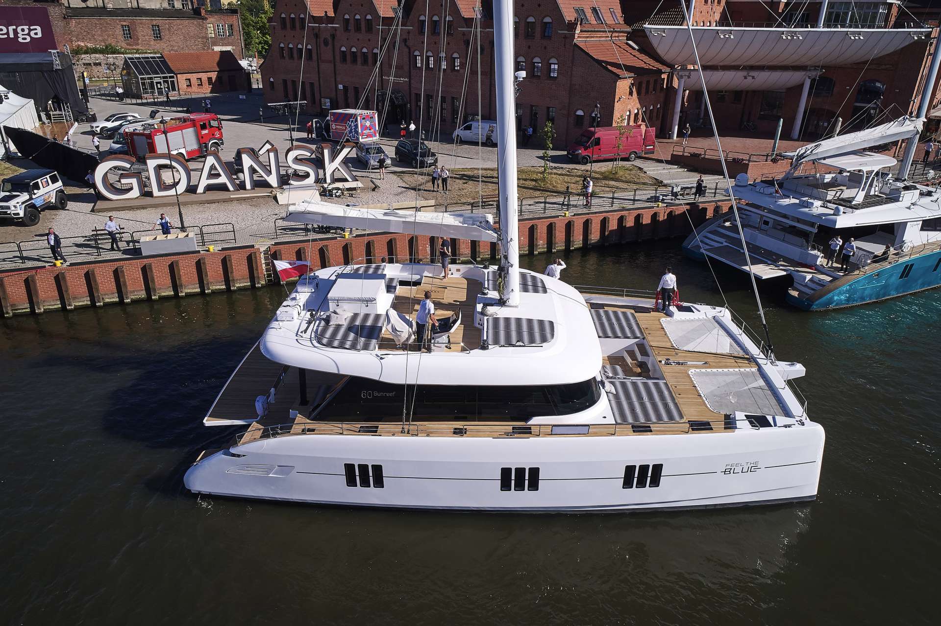 Sailing yacht FEEL THE BLUE is an 18.3m/60ft luxury sloop-rigged catamaran built by Sunreef Yachts with naval architecture also from the shipyard. The GRP hull and superstructure provides a shallow draft for mooring in sheltered ...