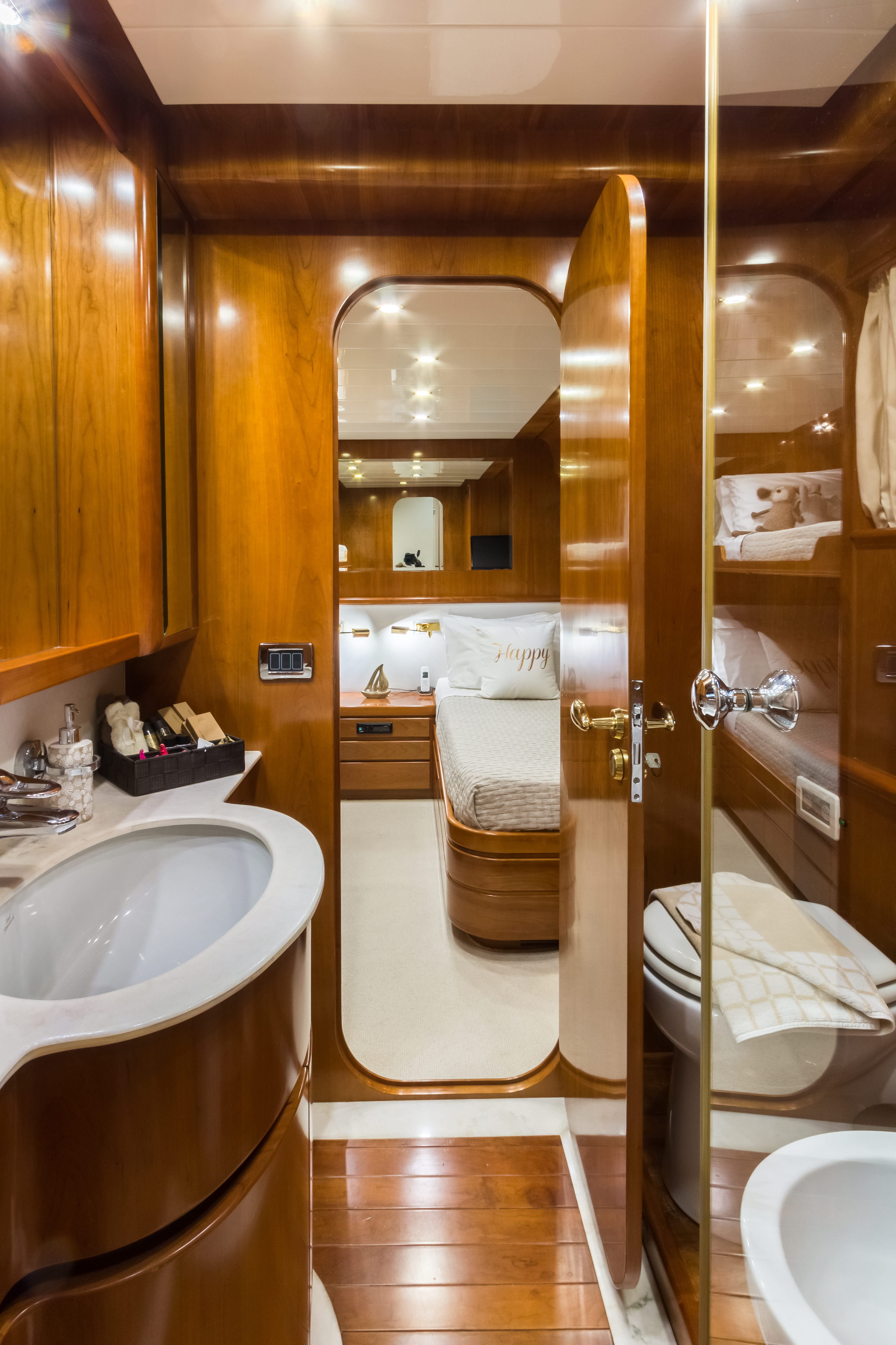 After dining, guests can stretch out on the bow sun pads and take in the sweeping views, or head up to the flybridge for the forward sun pad.