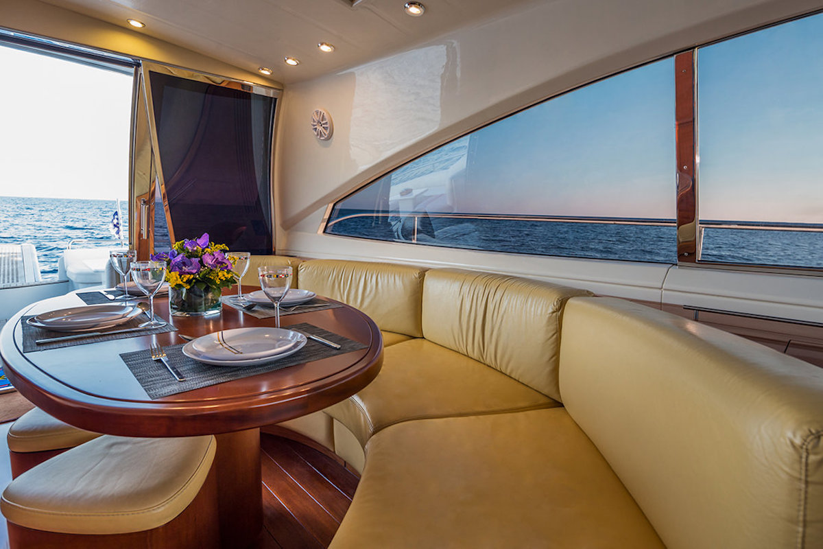 Warm wooden panelling against cream and white coloured furnishings form a timeless environment for up to six guests to relax in and socialise, with three cabins for a restful night's sleep.