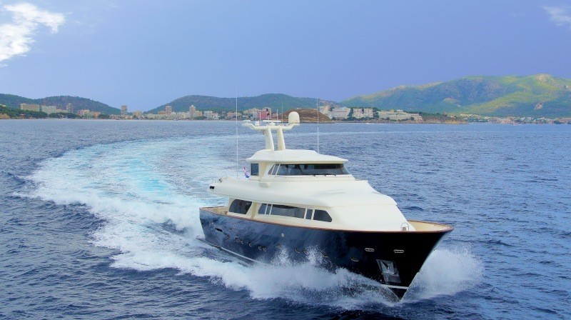 Built with a GRP hull and superstructure, the interiors were completed by the shipyard's in-house team and the accommodation sleeps up to eight guests over four en-suite cabins with a capacity for 12 pax while ...