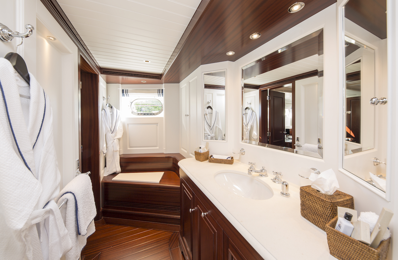 The atmospheric interiors within the superyacht contrast white-painted ...