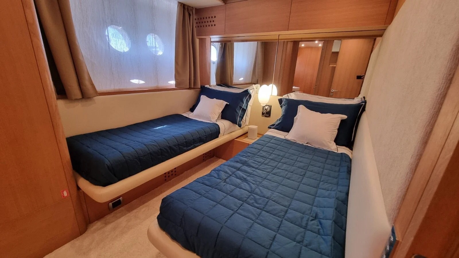 The foredeck has a spread of sun pads across the bow and a forward loveseat for a couple to savour the views at sunset.