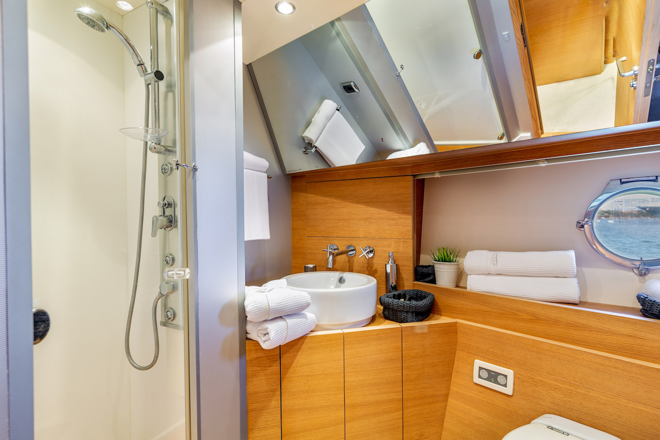 A pair of MAN 1,224 HP engines provides a cruising speed of 22 knots and a top speed of 32 ...