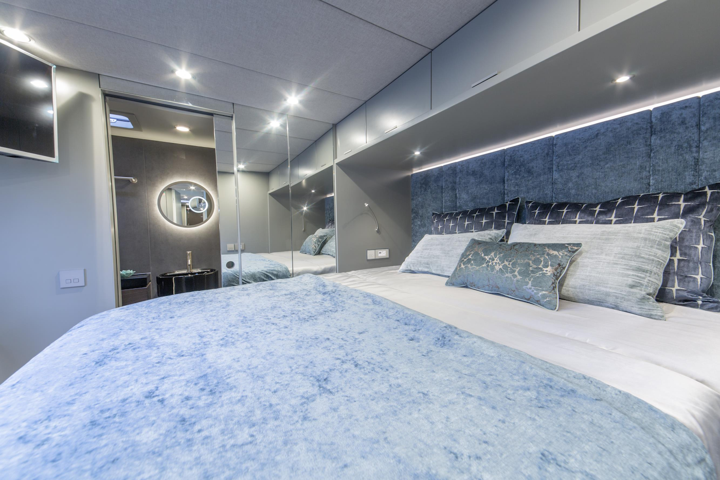 Forward, two trampolines create a fun exercising spot for children and an enjoyable place to sunbathe while listening to the seawater against the hulls.