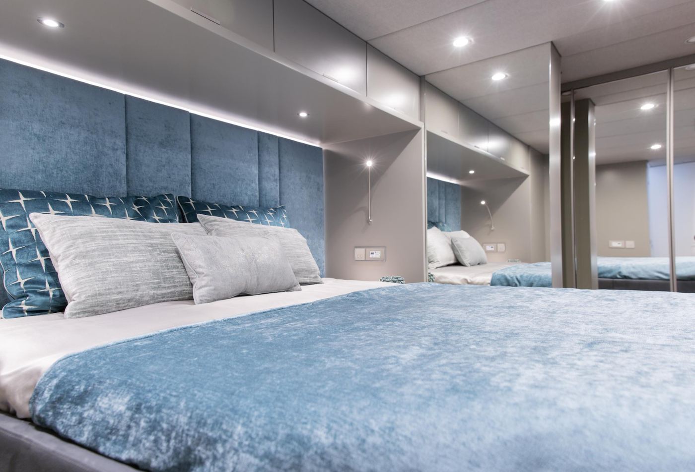 Forward, two trampolines create a fun exercising spot for children and an enjoyable place to sunbathe while listening to the seawater against the hulls.