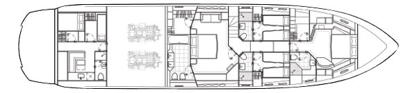 Full width Master cabin aft with aft stateroom with Queen Sized Bed dressing table and settee ...