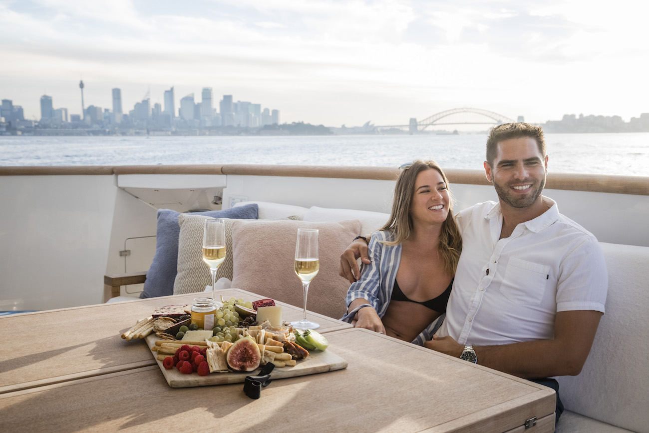 An interior staircase leads to the main deck aft, where there is a sophisticated alfresco dining table that can be extended outwards and a choice of sofa seating or free-standing chairs.