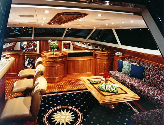 Her characteristic dark maroon hull is very eye catching along with her modern exterior styling.