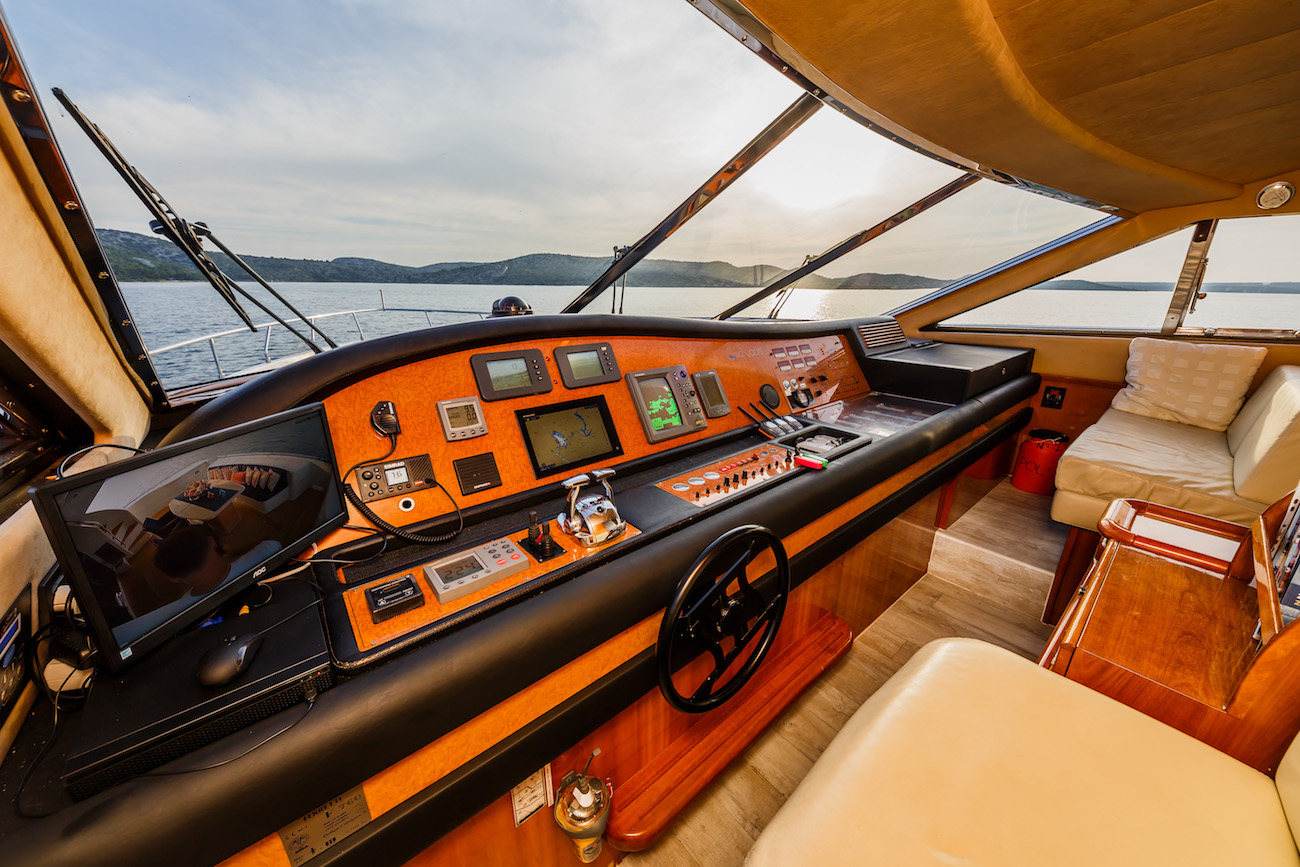 On the flybridge, bimini shades can be erected for long periods of outdoor use and the setting contains a forward ...