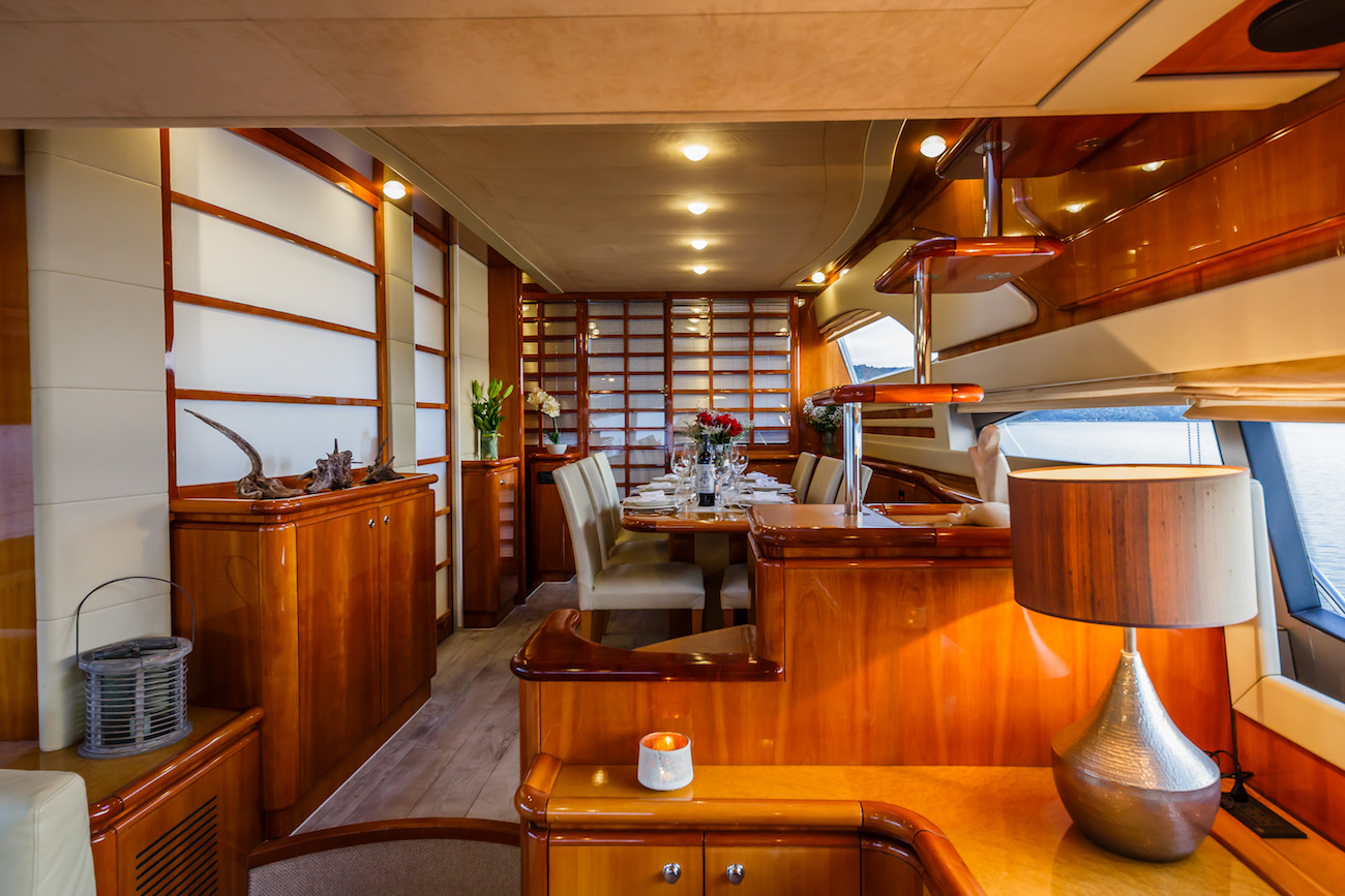 Accommodation on board is offered for up to eight guests in a four-cabin layout.
