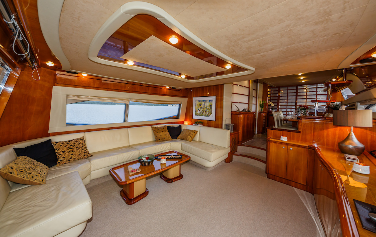She was built by the Italian shipyard Ferretti with naval architecture and interior design by their in-house team of professionals. Accommodation on board is offered for up to eight guests in a four-cabin layout.
