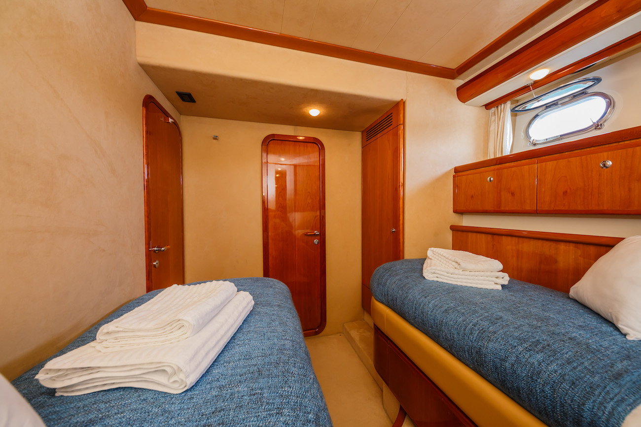 Accommodation on board is offered for up to eight guests in a four-cabin layout.
