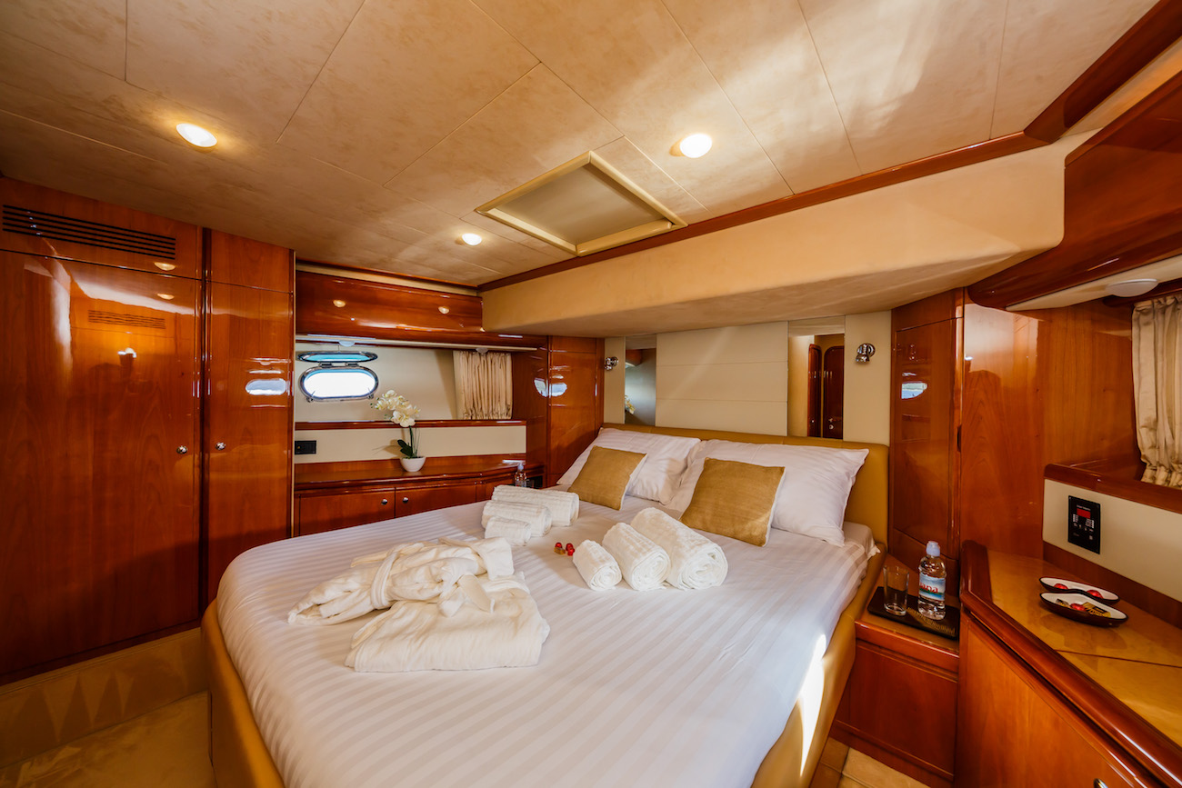 Accommodation on board is offered for up to eight guests in a four-cabin layout.