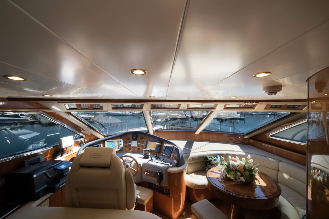 Her main aft deck is shaded with seating and alfresco dining, this area also leads to the extended swim platform. There is a large sunning area on the foredeck. The sundeck is well-appointed complete with additional sunpads, seating, plus a second alfresco dining option.
