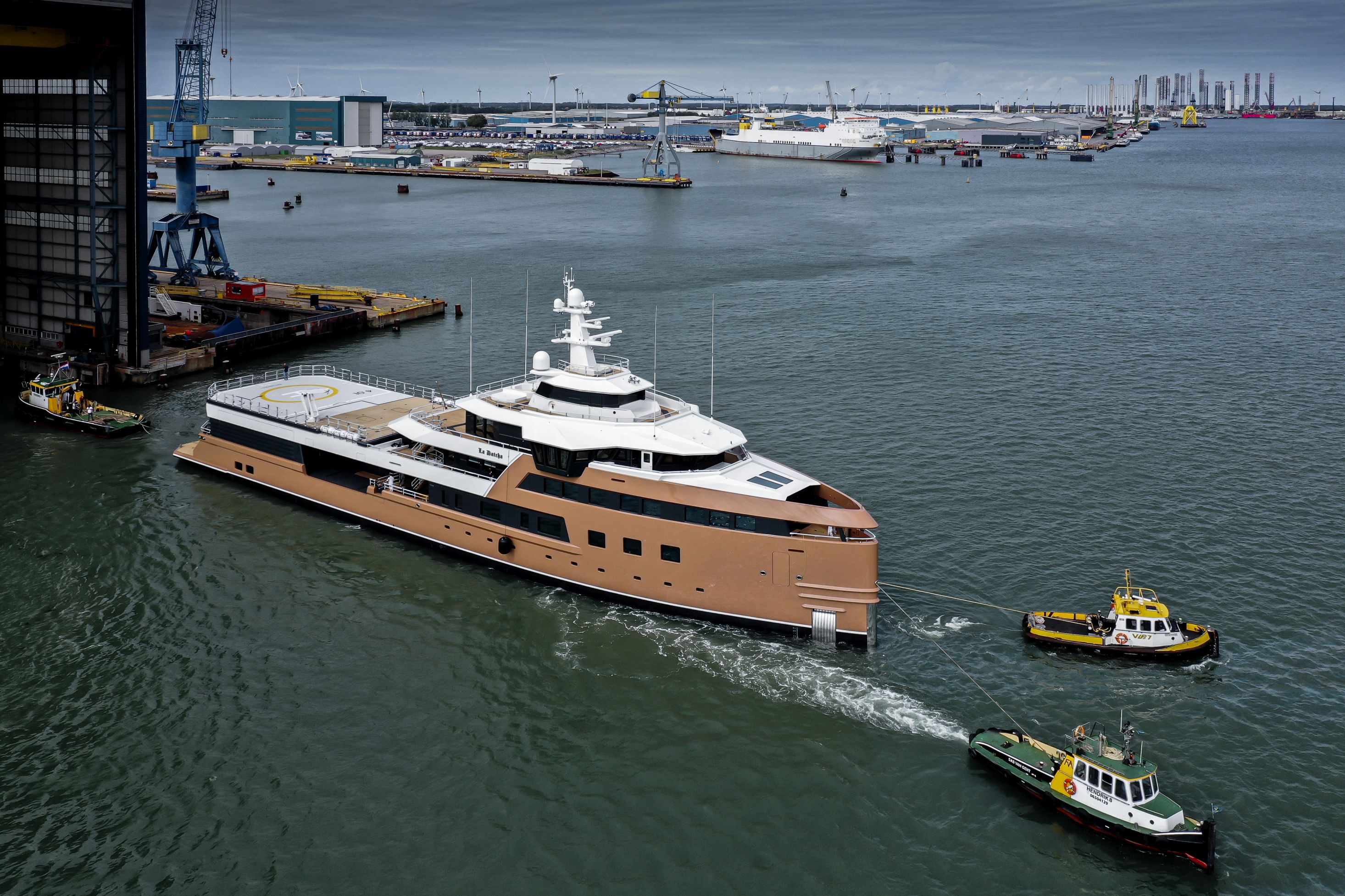 Damen Yachting SeaXplorer 77 LA DATCHA Emerging From Dock