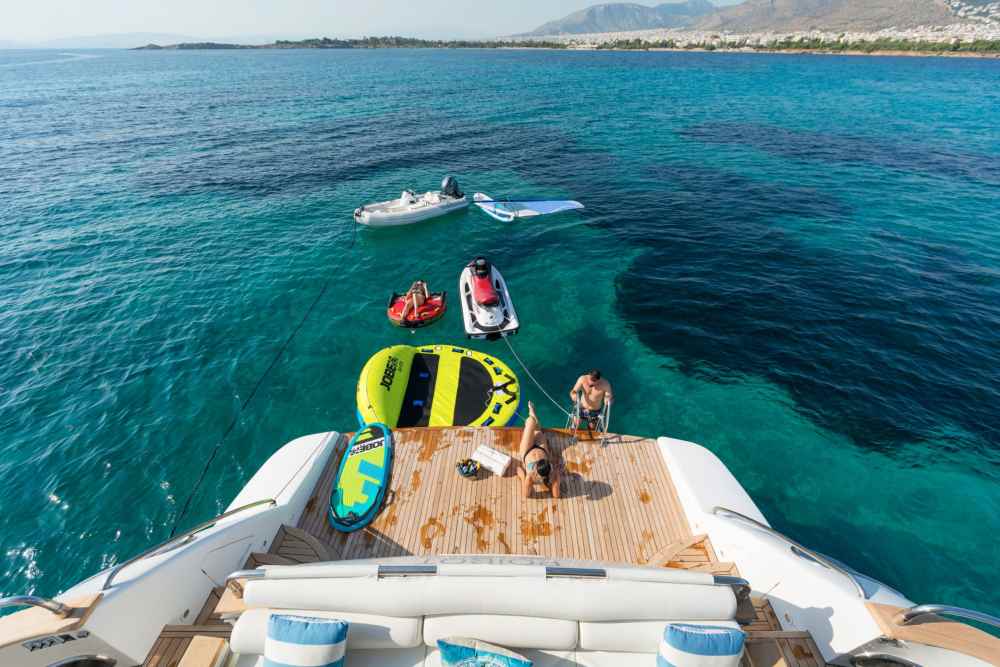 NOTABLE FEATURES OF ILLYA F: ~Classic appearance ~Modern technology ~Top speed of 23 knots ~Great variety of water toys ~Air conditioning ~Wi-fi
