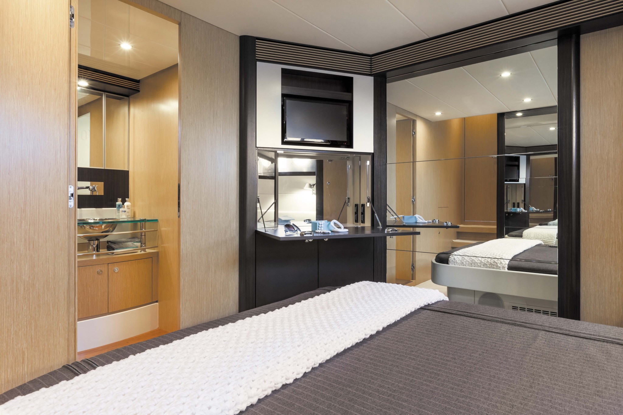 This open-style sports yacht offers excellent performance and speed, combined with elegant accommodation for up to four charter guests in two cabins. A crew of two offers professional service on board.