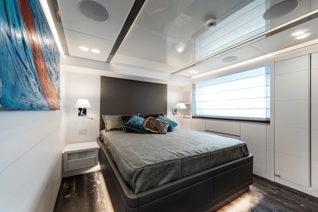 A final guest area can be found on the flybridge, where the aft contains four sun loungers and the central area beneath the hardtop hosts a bar as well as a ...
