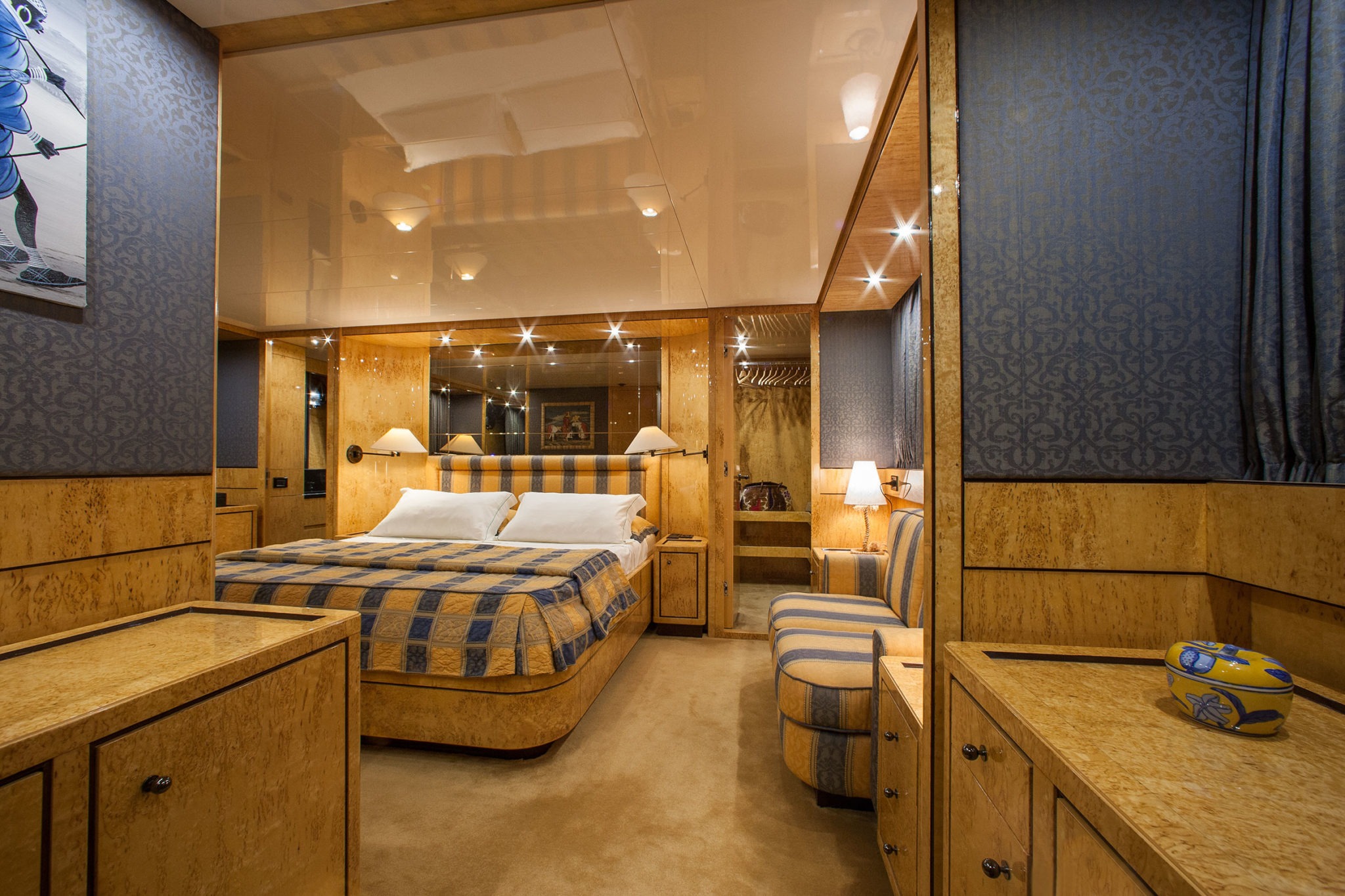 The lower deck hosts the guest accommodation of a Master suite, a double cabin and two twin cabins, all with en-suite facilities.