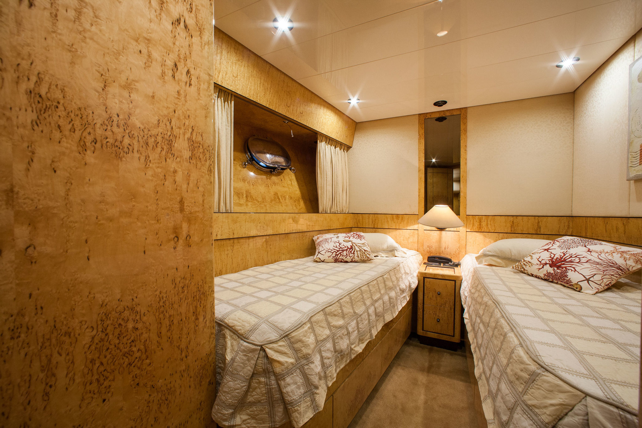 She was refitted in 2015, offering accommodation for up to eight guests in four cabins. There is a crew of three servicing the yacht and guests on board.