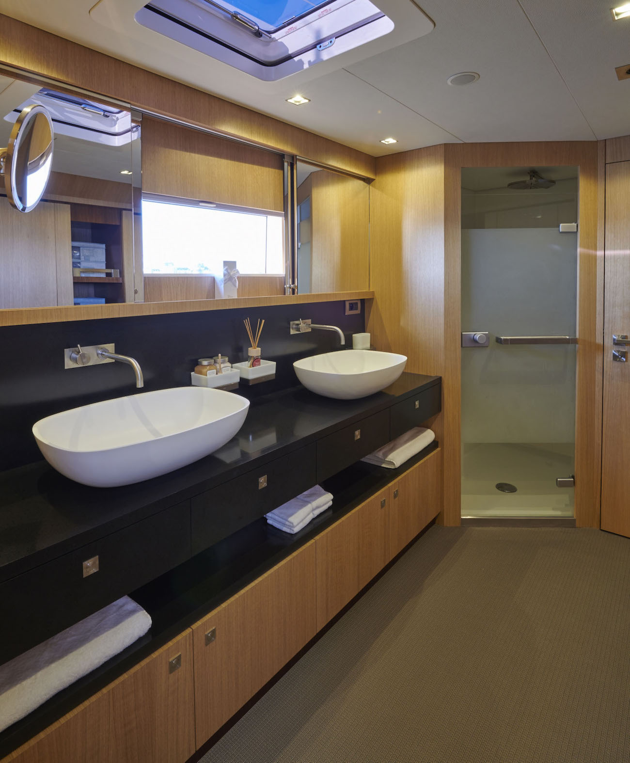 The port-side hull hosts the forward crew accommodation consisting of the Captain's cabin, double bunk cabin and mess. The last double en-suite guest cabin is placed ...