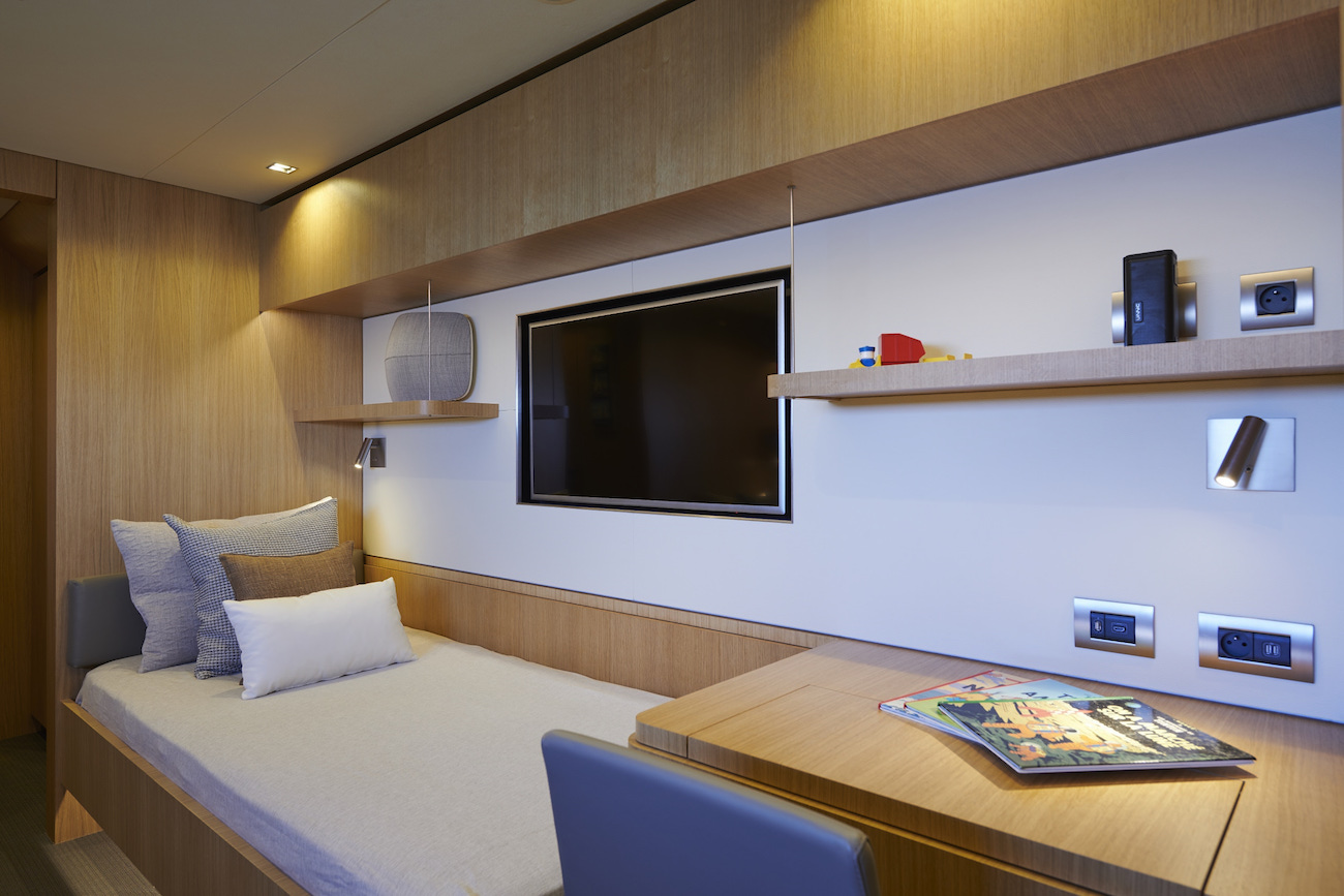 Her accommodation sleeps up to nine guests over four cabins with a crew of four to provide excellent service throughout the voyage.