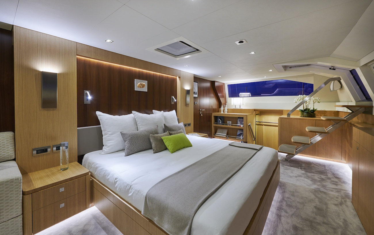 Guests have convenient access to the sea by following the staircase running down each hull, and the aft section has storage for Scuba diving equipment and mountain bikes to complement the other water toys stored on board.