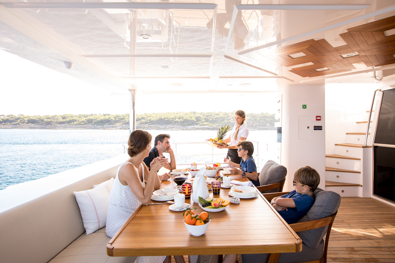 To the aft, there is a formal dining area to seat up to 10 guests to a lavish meal while the salon offers three sumptuous sofas and additional armchairs and coffee tables for the ideal setting to begin or wind down an ...