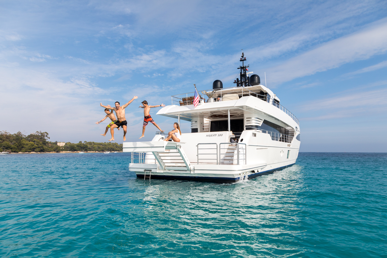 Majesty 100 Yacht MIA Jumping Into Water
