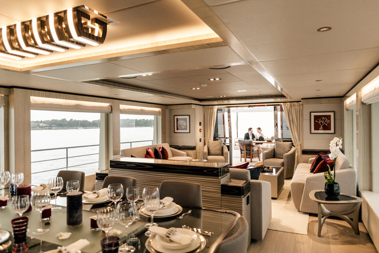 To the aft, there is a formal dining area to seat up to 10 guests to a lavish meal while the salon offers three sumptuous sofas and additional armchairs and coffee tables for the ideal setting to begin or wind down an ...