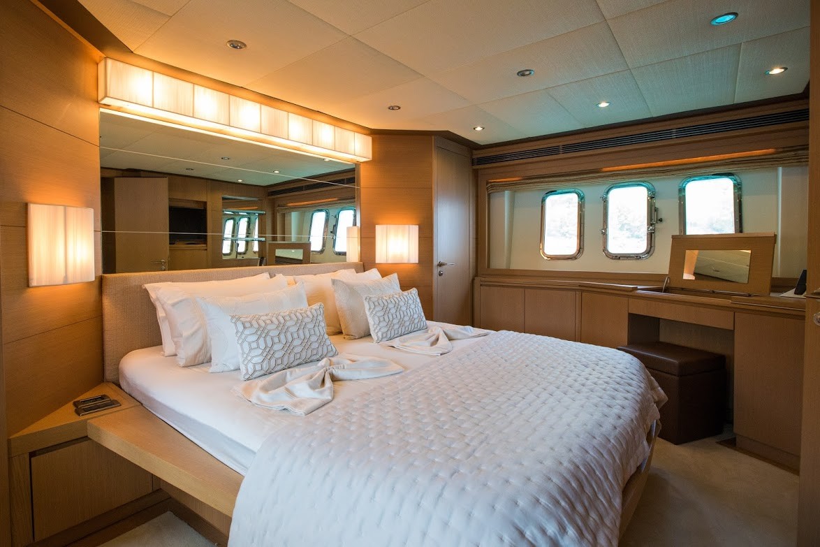 She has a superb flybridge for the ultimate cruising experience and boasts four ensuite staterooms for up to eight charter guests on board. She is serviced by a professional crew of three.