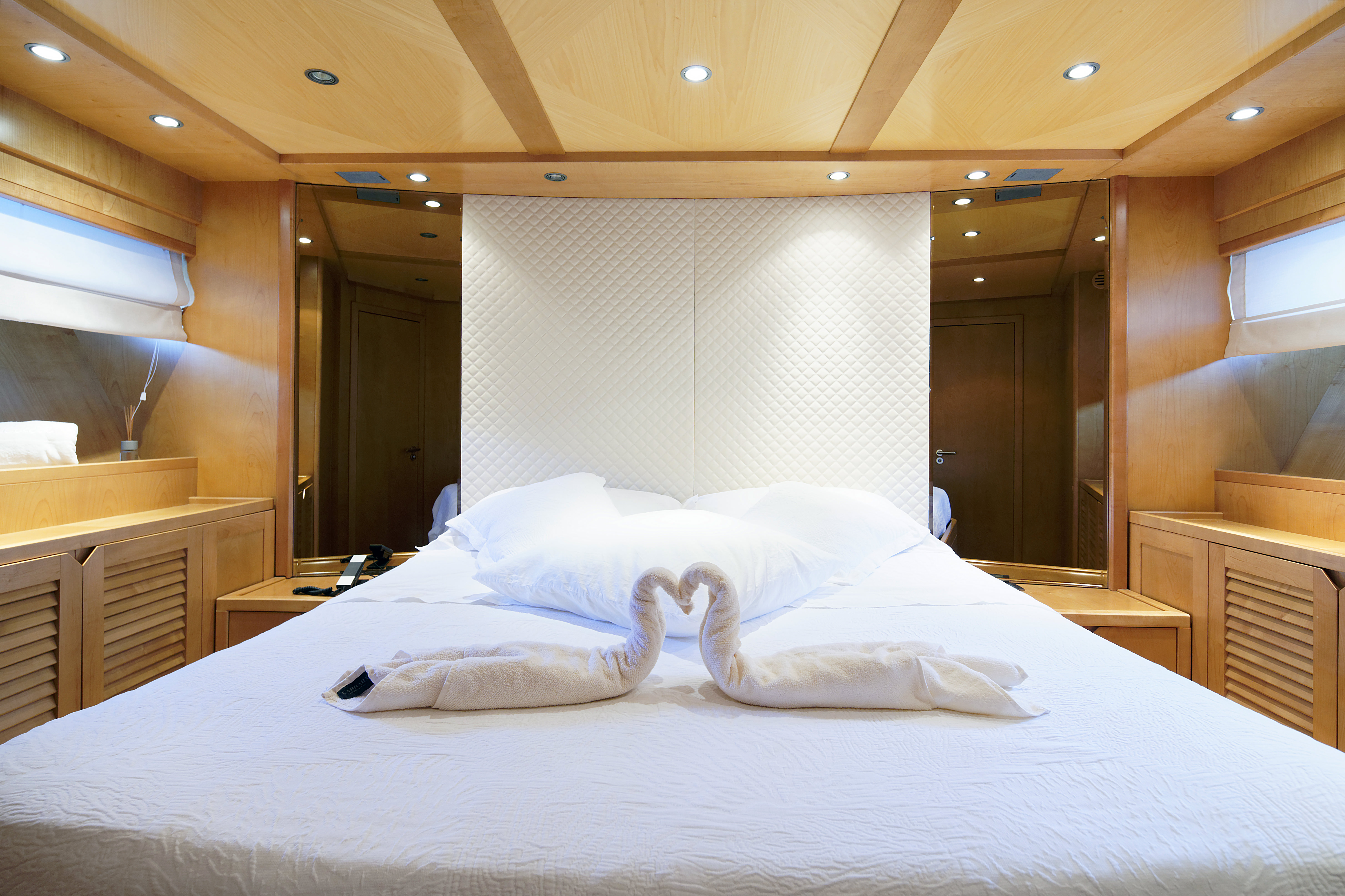 The yacht can offer deluxe accommodation in four lovely cabins sleeping up to ten charter guests on board. She has a crew of four.