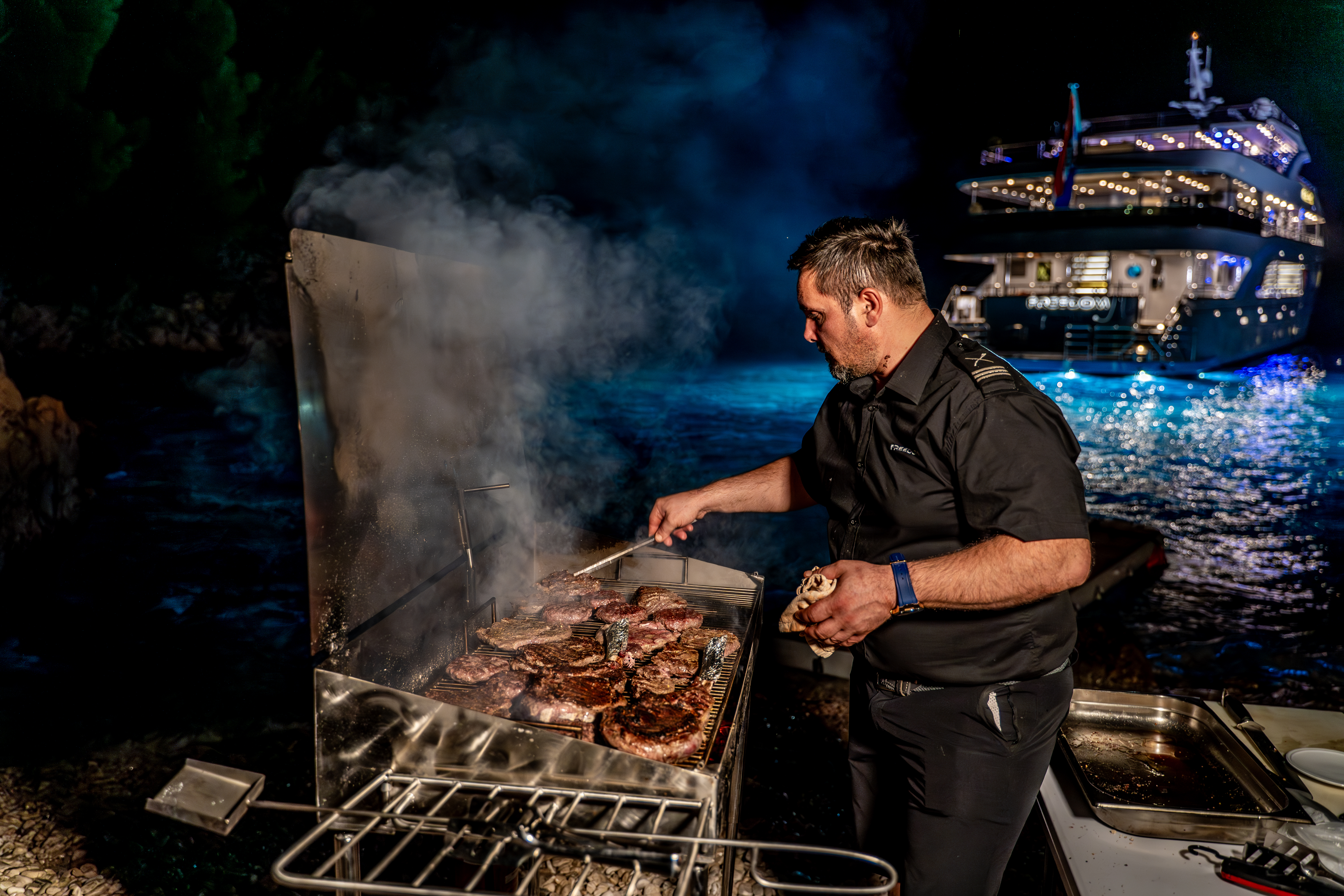 Aft of the yacht is the swim platform, which allows easy access to the sea during many swim stops made during a yacht charter. This allows endless enjoyment in crystals clear sea with few easy steps along the way.