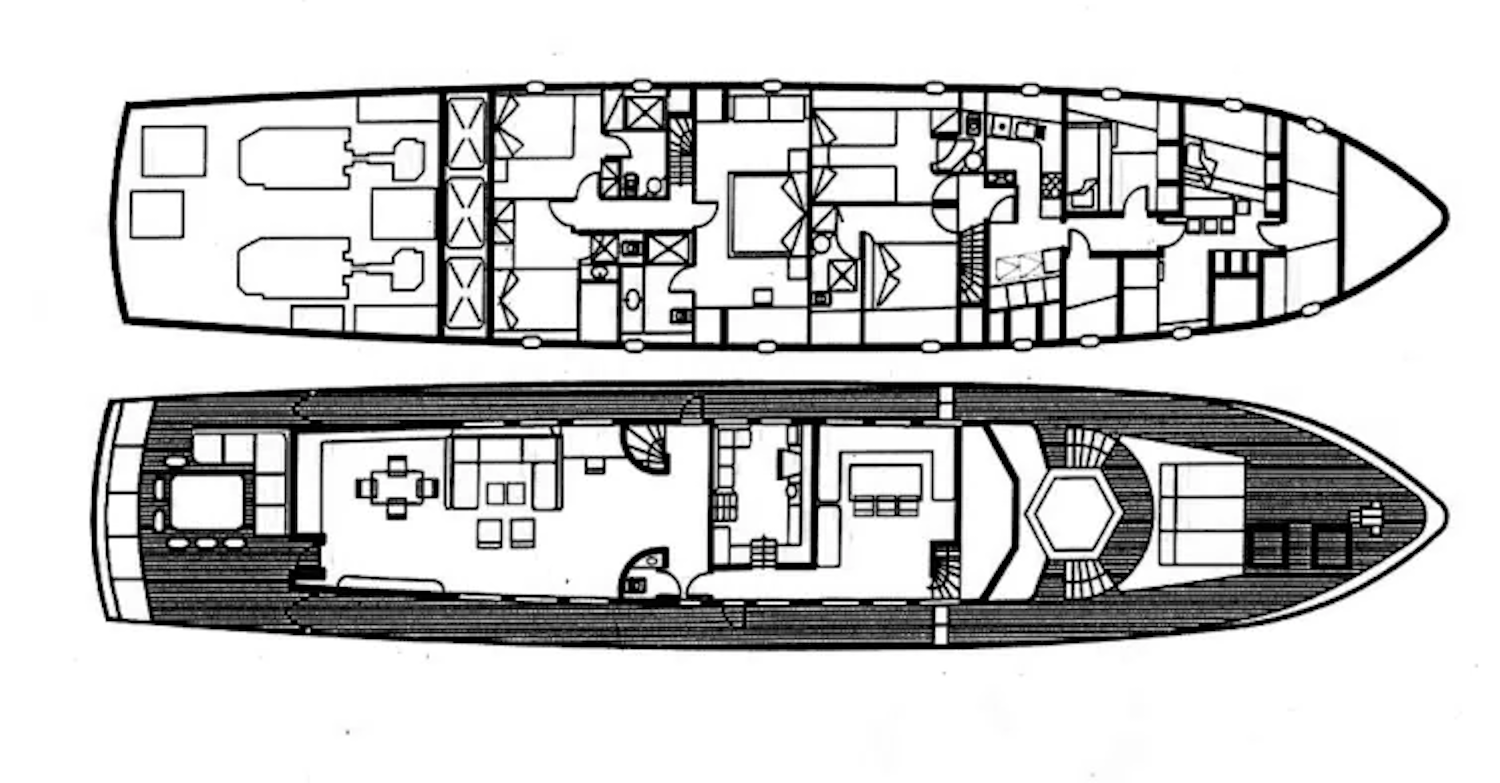 Measuring 33.00m (108' 3”), she is able to accommodate up to 11 charter guests in a comfortable and inviting environment and a cabin layout that includes five staterooms. Her crew of 6 offers highly-professional service throughout the entire vacation.
