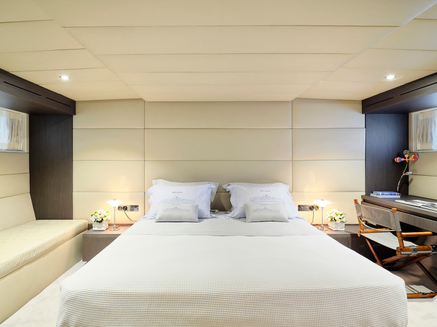 Measuring 33.00m (108' 3”), she is able to accommodate up to 11 charter guests in a comfortable and inviting environment and a cabin layout that includes five staterooms. Her crew of 6 offers highly-professional service throughout the entire vacation.
