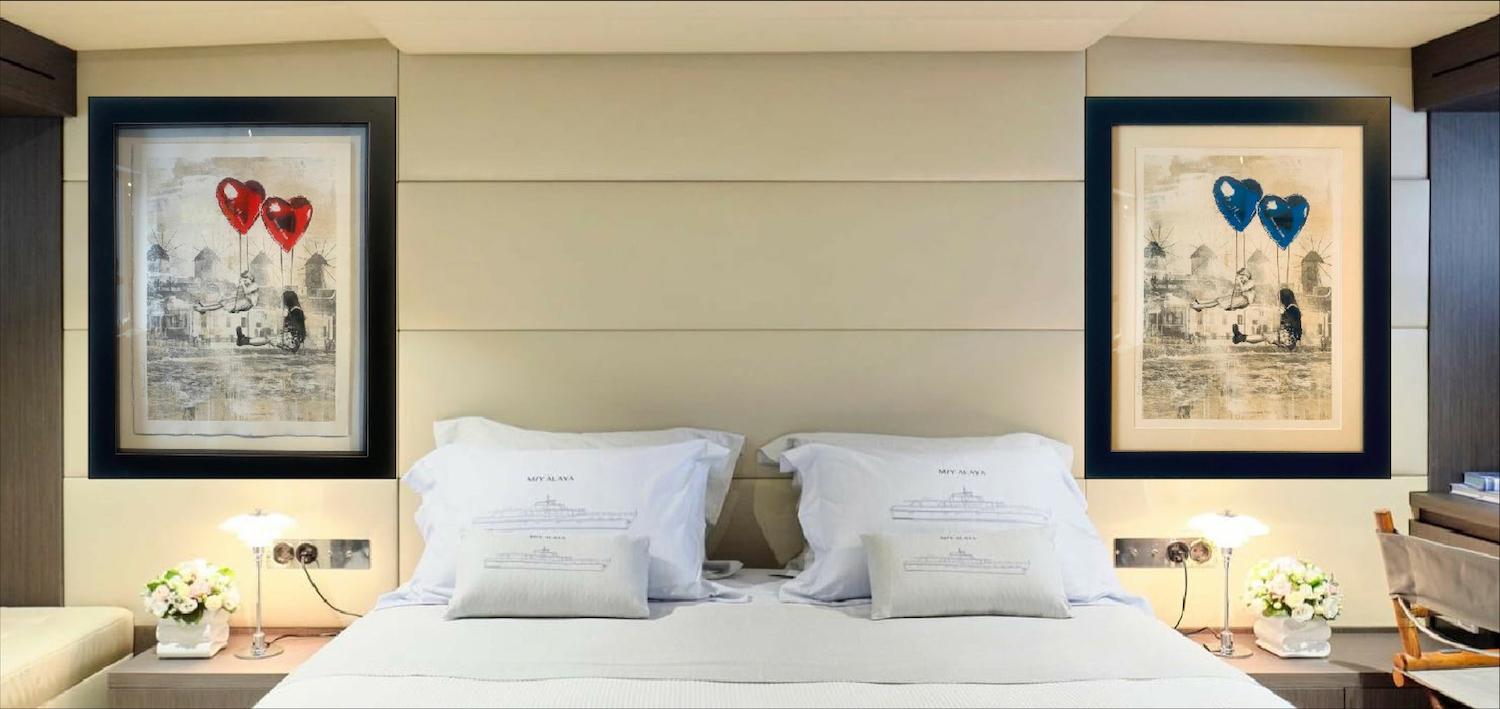The broad beam provides spacious guest accommodation on the lower deck which consists of a Master suite as well as three double cabins and a twin cabin, all with en-suite facilities.