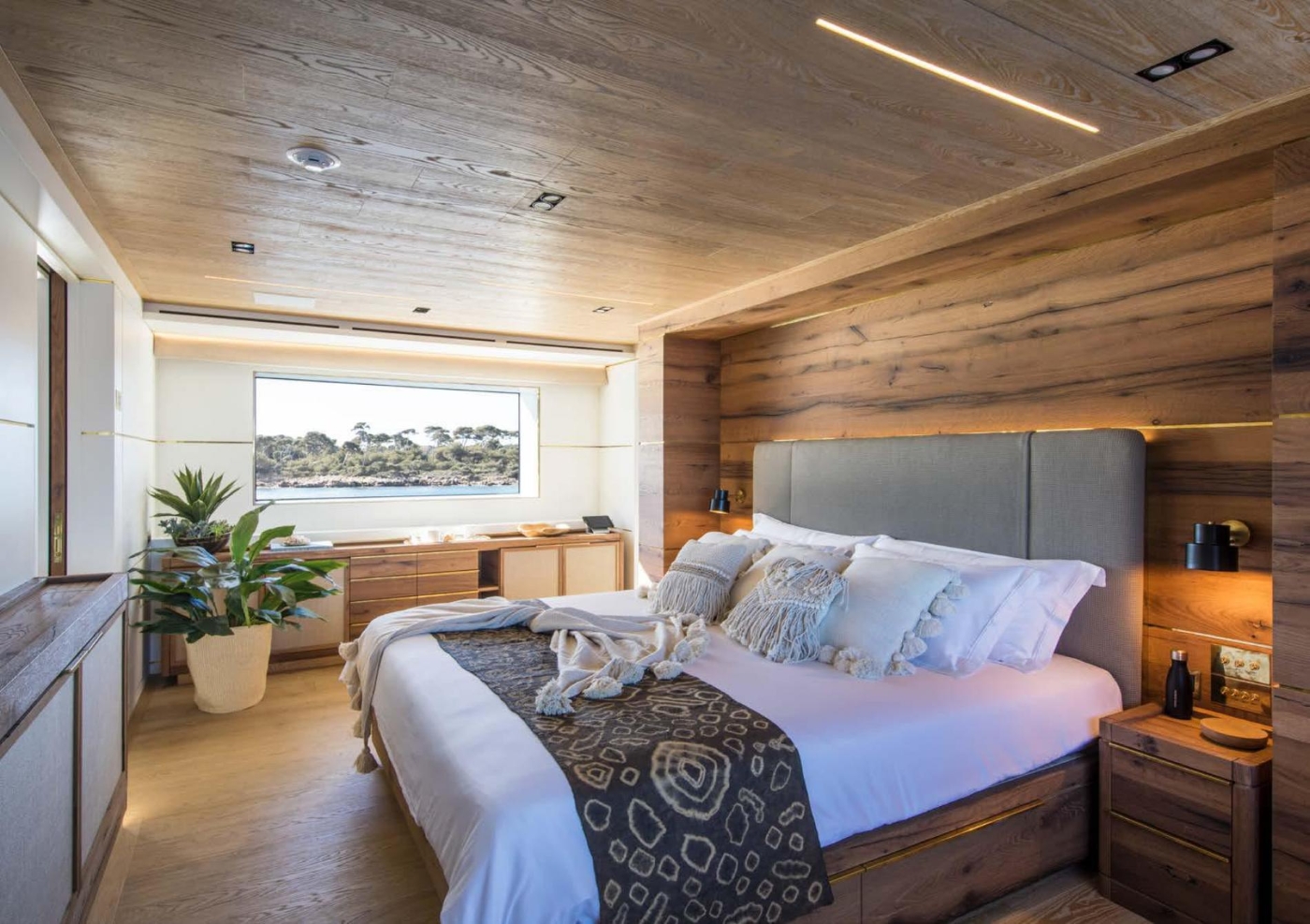 All staterooms feature their own en-suite bathroom facilities with Bianco Galizia granite incorporated. A crew of six sleeps in three cabins. Tender & Toys