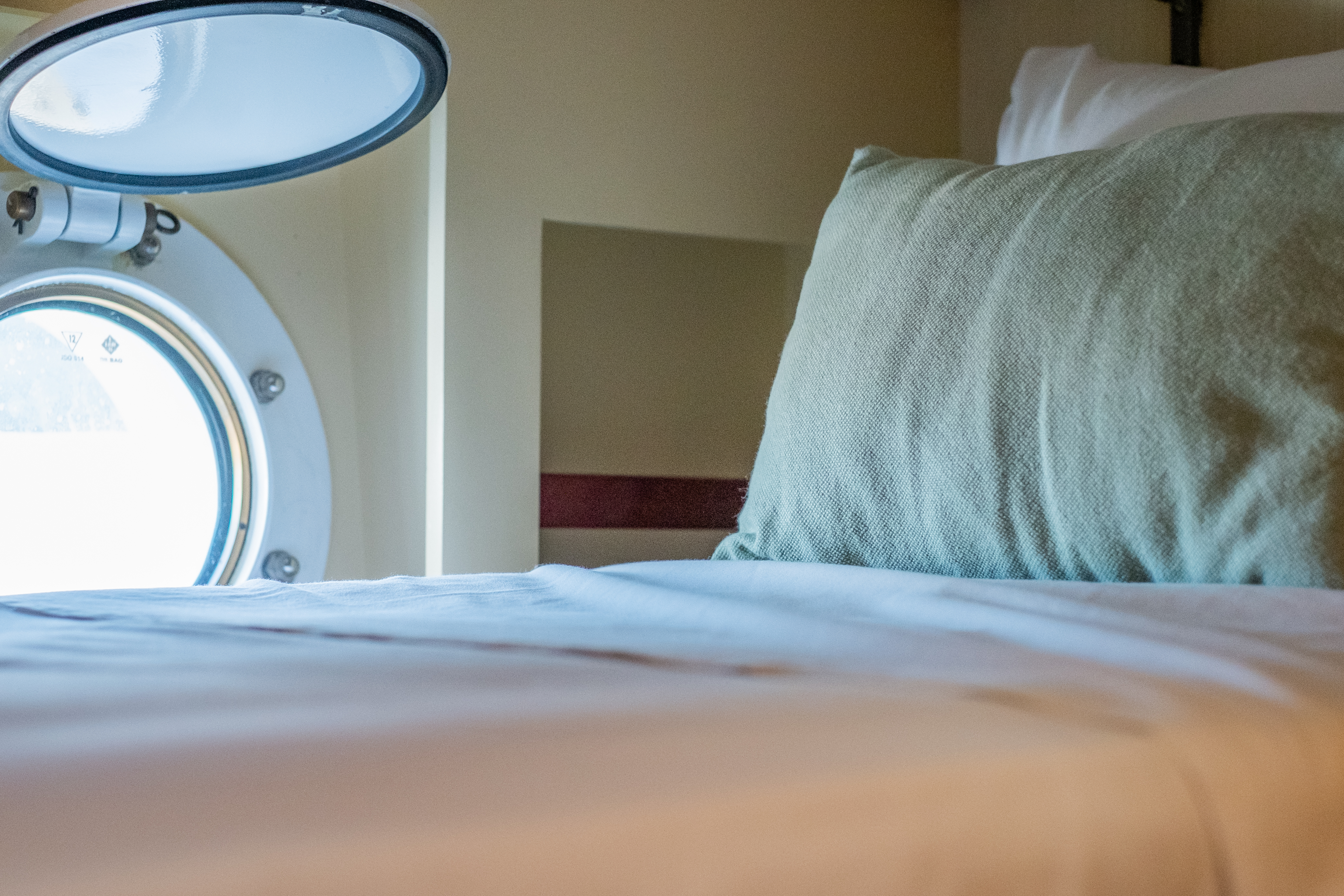 To starboard, the formal dining area consists of a soft U-shaped seating area and an elevated table. Down the hallway to the aft, a staircase leads up to the bridge where there is an additional seating area comprised of two ...