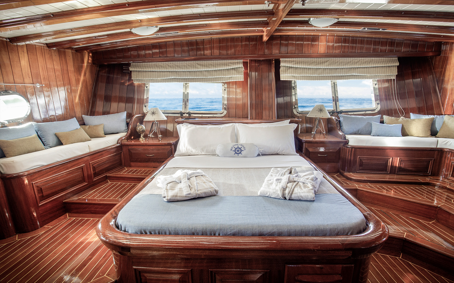The opposite is the port-side galley/breakfast bar for efficient service throughout the occasion, and the atmospheric interior receives an abundance of natural light from the surrounding windows.