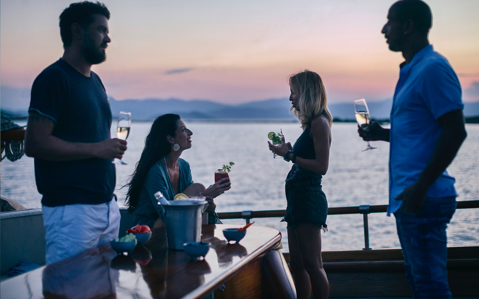 The opposite is the port-side galley/breakfast bar for efficient service throughout the occasion, and the atmospheric interior receives an abundance of natural light from the surrounding windows.