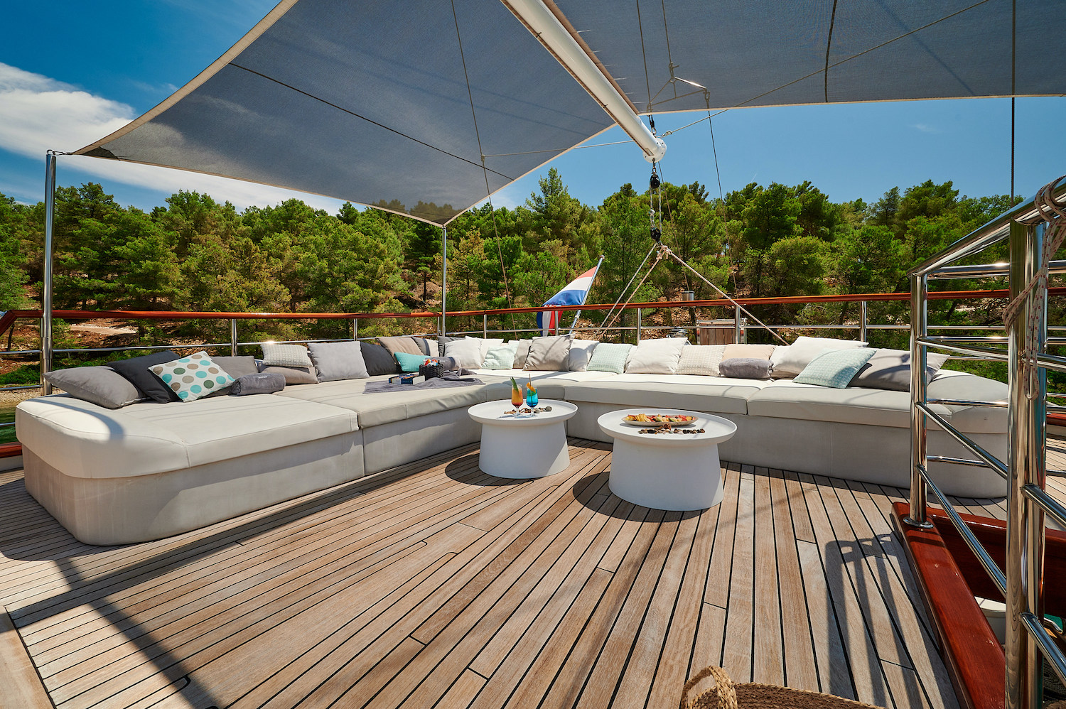 48m motor sailer yacht CORSARIO provides yacht charters in The Mediterranean, Europe, Zadar, Venice, Trogir, Sukosan, and Split.