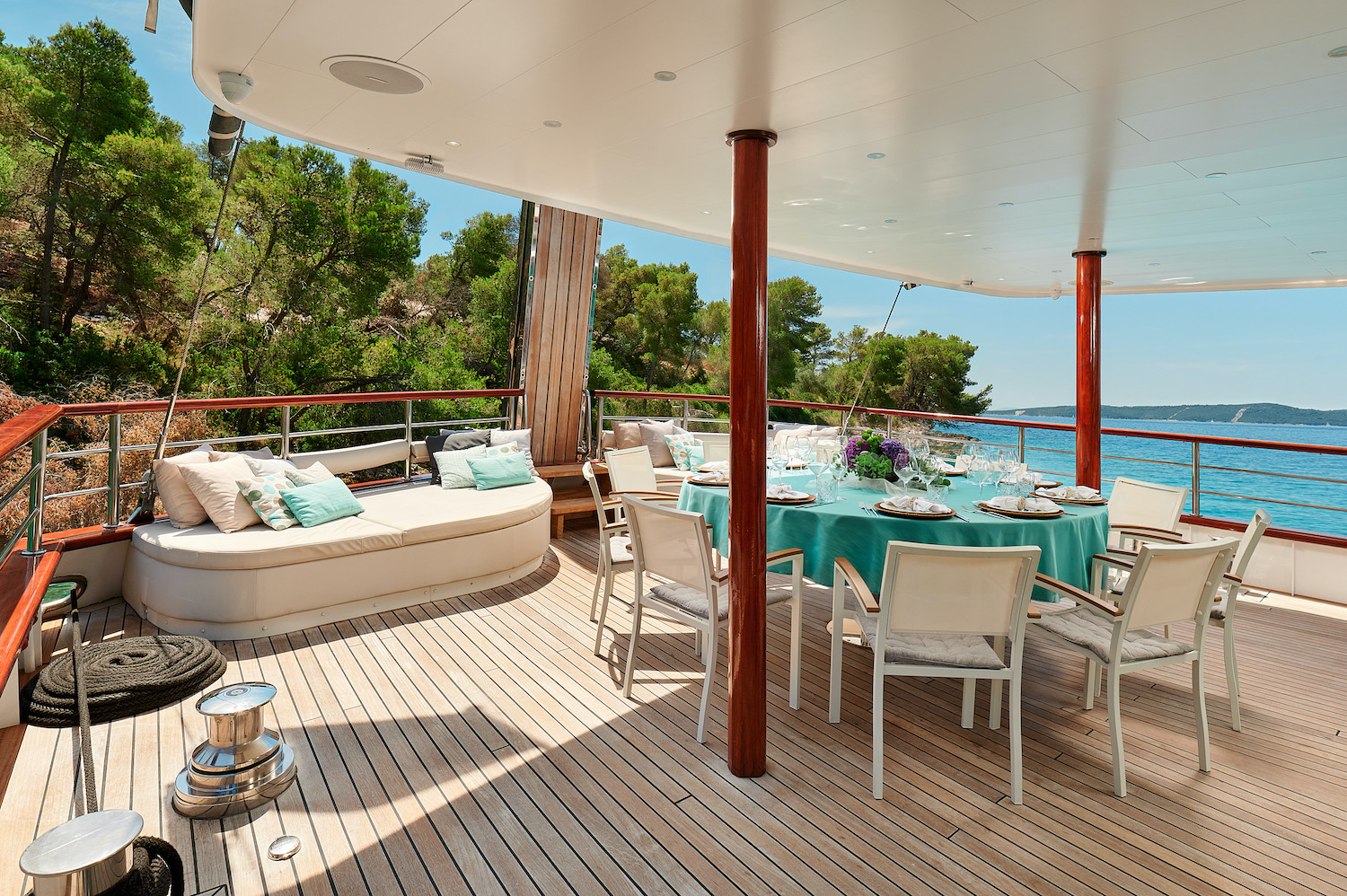 48m motor sailer yacht CORSARIO provides yacht charters in The Mediterranean, Europe, Zadar, Venice, Trogir, Sukosan, and Split.