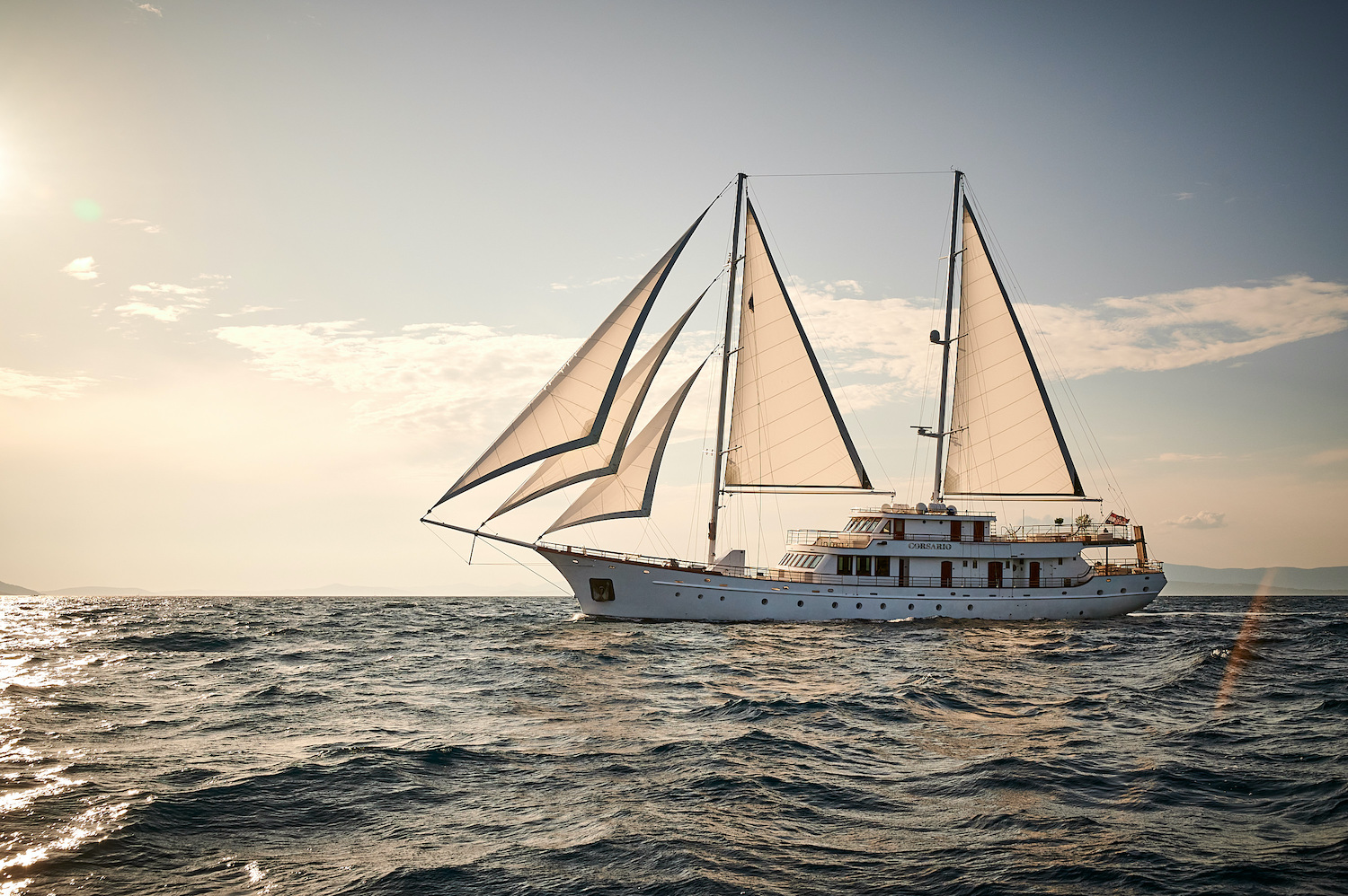 48m motor sailer yacht CORSARIO provides yacht charters in The Mediterranean, Europe, Zadar, Venice, Trogir, Sukosan, and Split.
