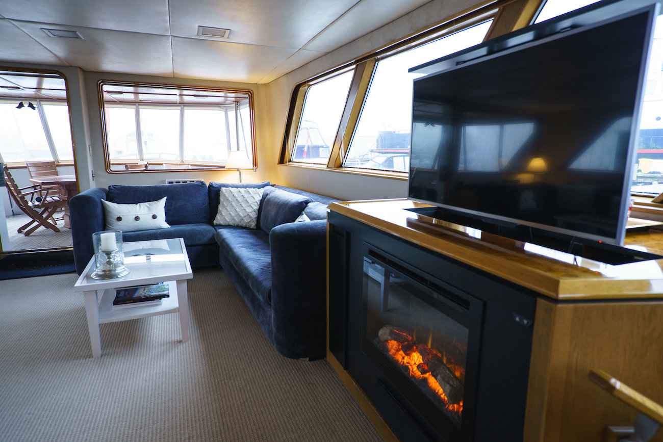 For restful evenings and time in transit, there is a port widescreen TV with an enclosed fire underneath to enhance the ambience.