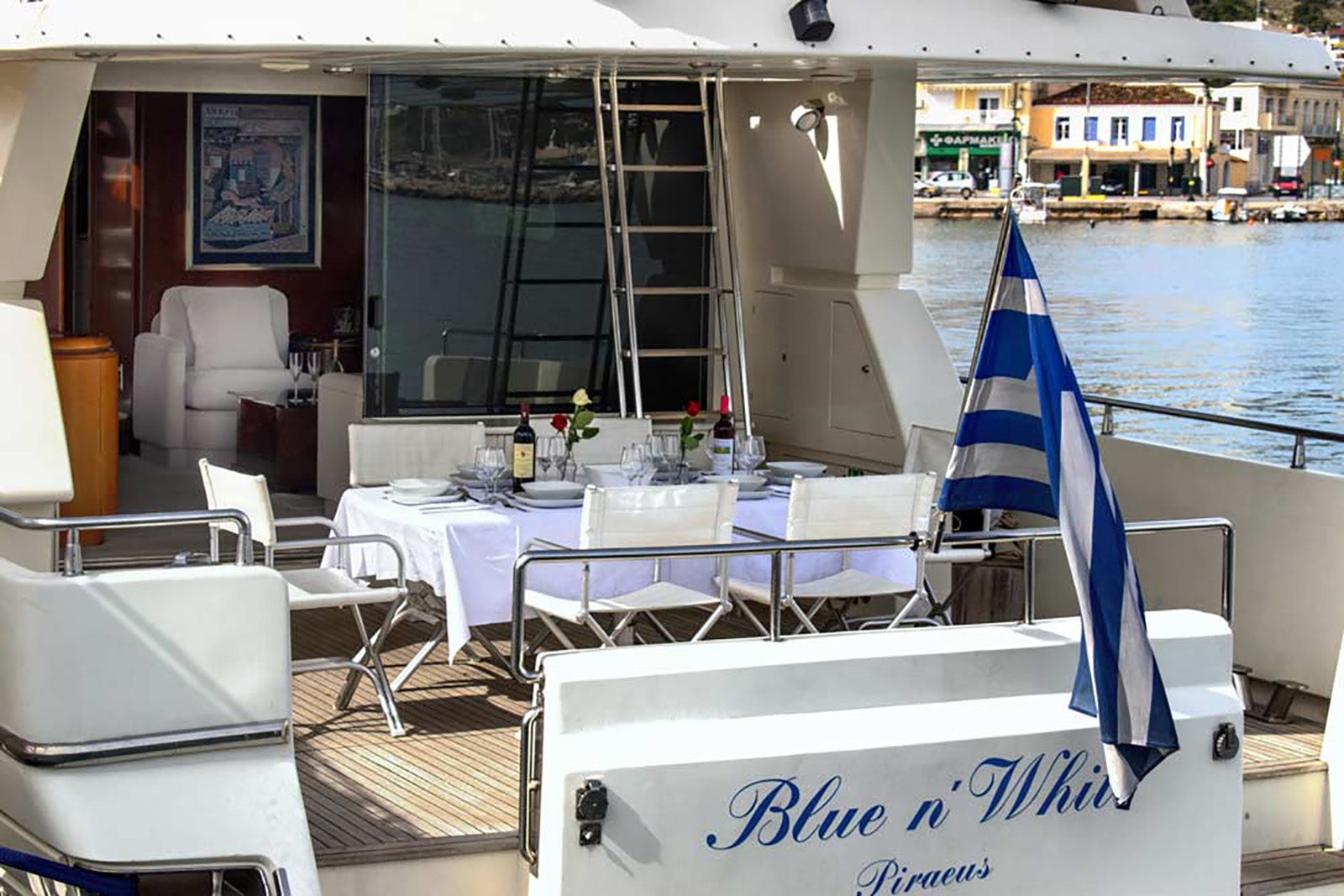NOTABLE FEATURES OF BLUE N' WHITE: ~Excellent luxury yacht for small groups ~Intimate interior and alfresco dining areas ~Classic interiors with modern technology ~Top speed of 30 knots ~Air conditioning ...