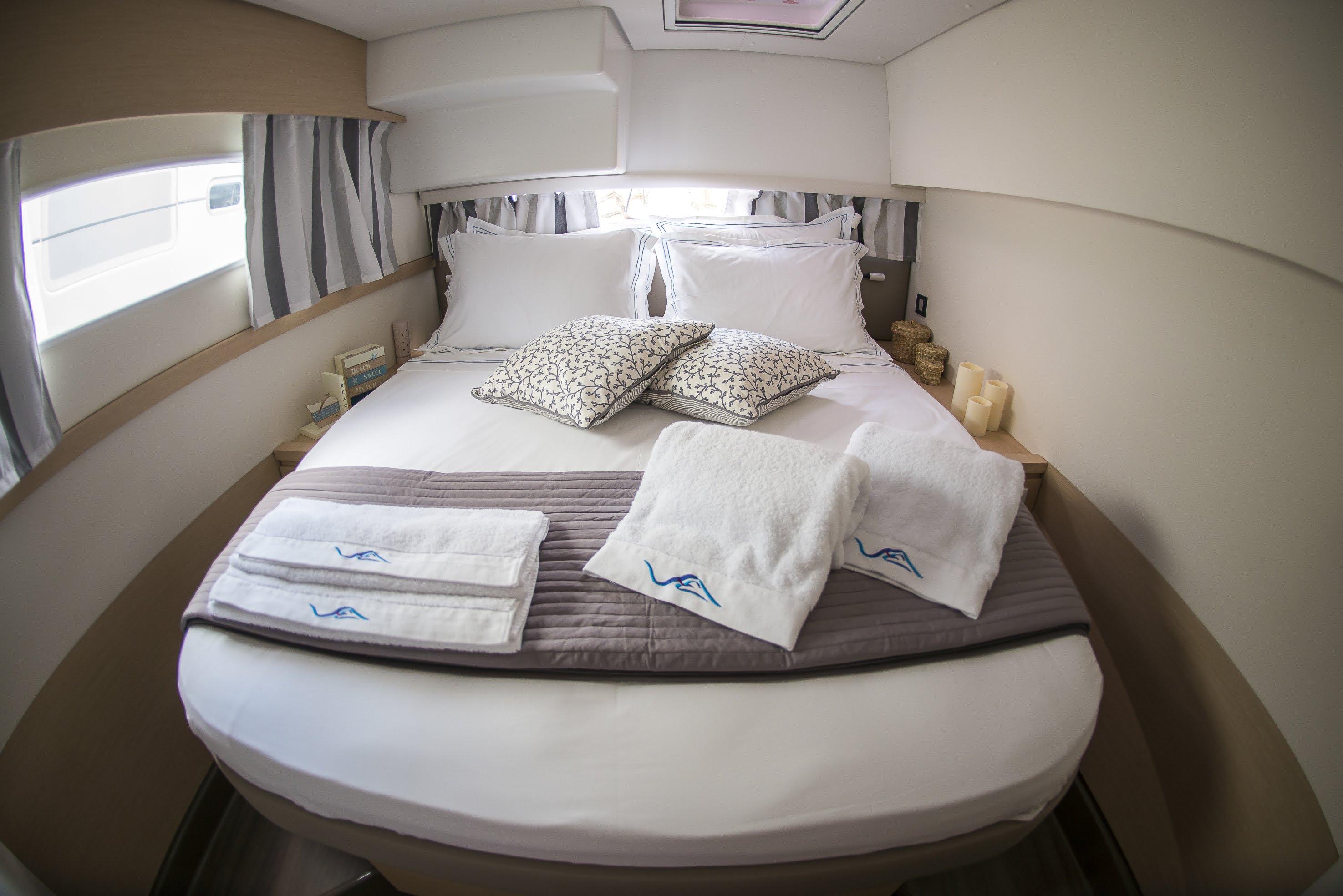 Accommodation on board spreads over five cabins, sleeping up to ten charter guests. There is a crew of three.