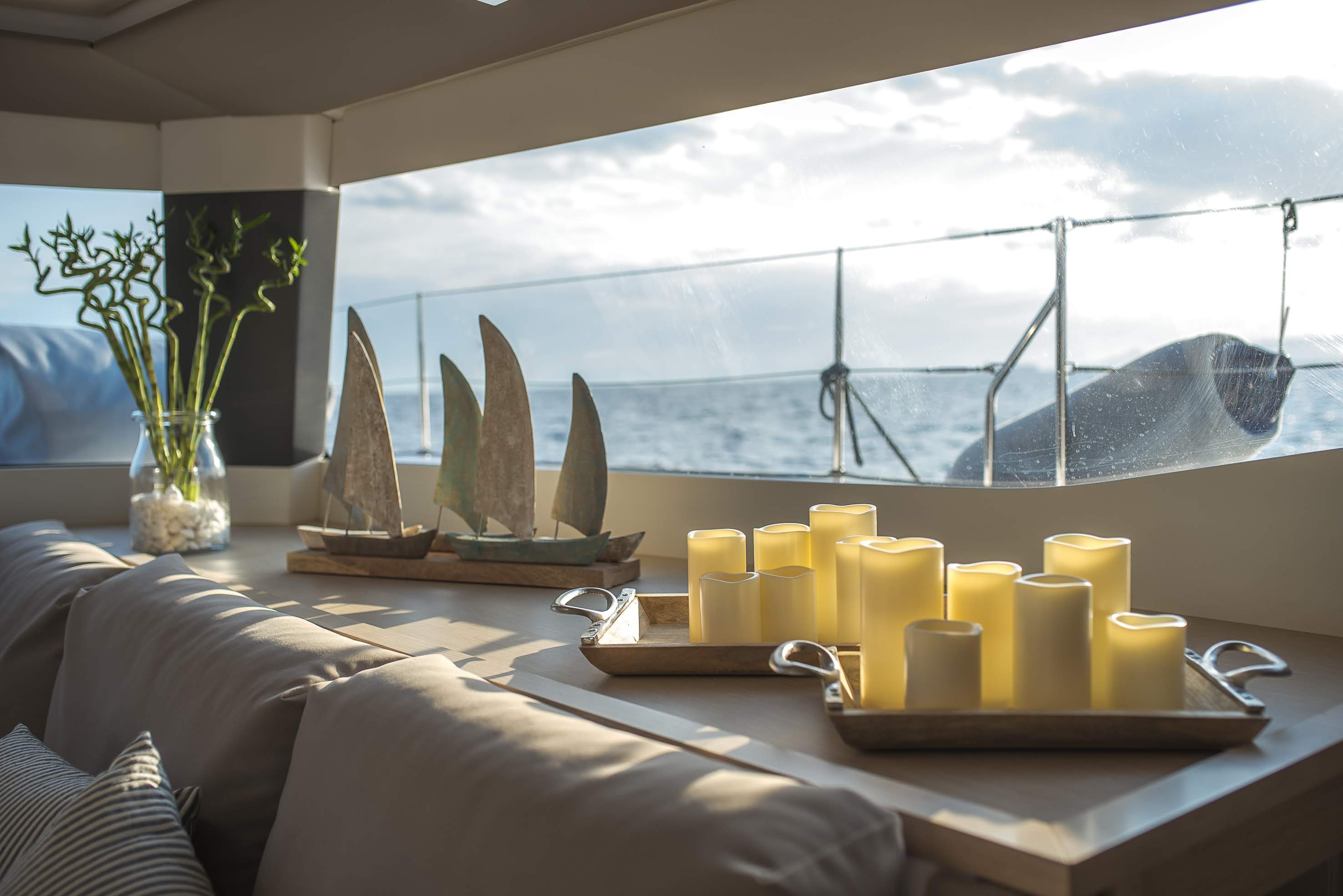Launched in 2017 and refitted in 2018, the yacht features lovely interior design by Berret/Racoupeau, created with great attention to detail. Accommodation on board spreads over five cabins, sleeping up to ten charter guests. There is a crew of three.