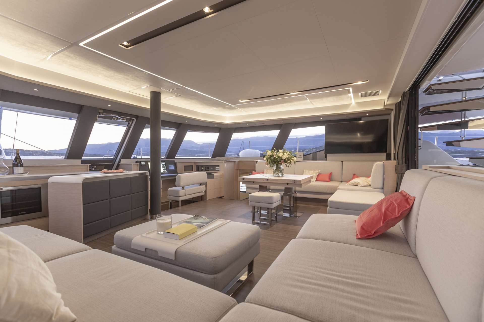 Luxury catamaran yacht AETHER (EX NUMBER ONE) is a 20.42m (67') sailing catamaran yacht, offering luxurious charter vacations in the Mediterranean. She is able to host up to eight guests overnight in a four-cabin layout.