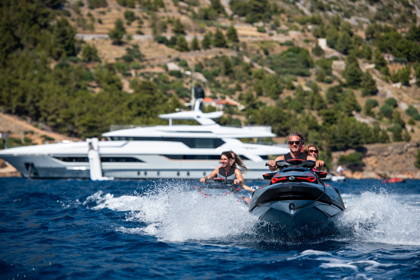 The yacht features striking exterior and interior design by Francesco Paszkowski with accommodation for up to twelve guests and a crew of nine.